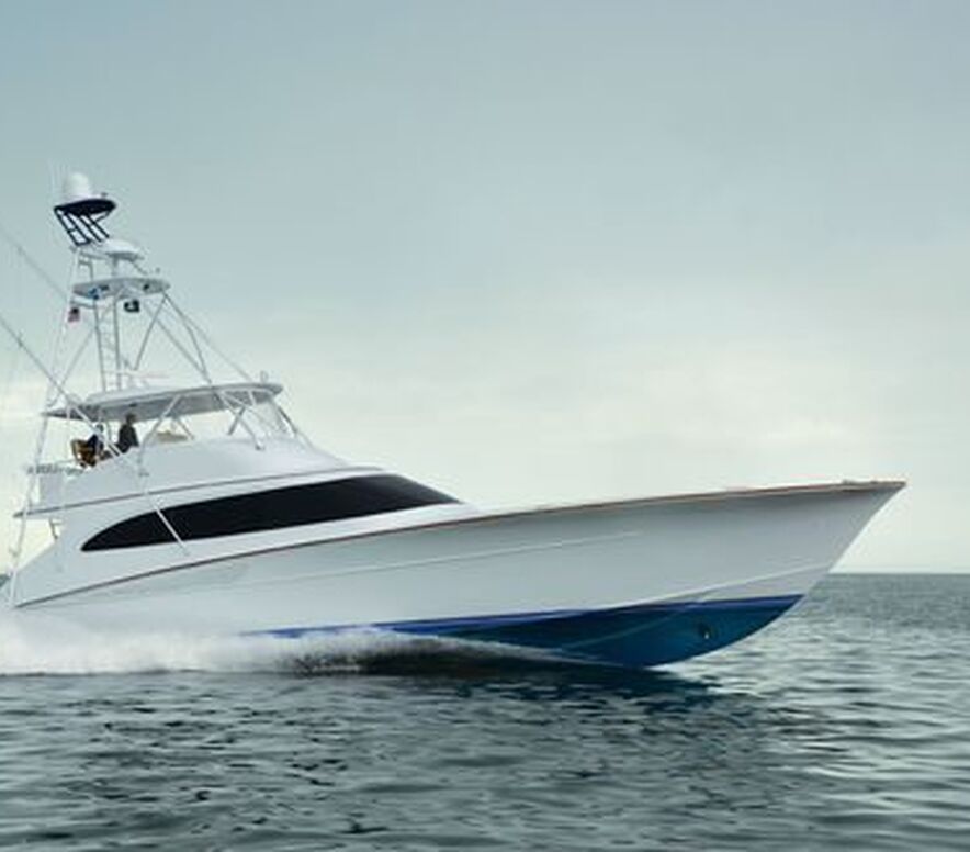 Despite her head-turning good looks, her design, shape and profile are first and foremost based on her intended purpose. Low, sleek, and appearing as if in constant motion, she is in perfect proportion to her length. Whether viewing her landing strip foredeck, the gentle slope of the house with its familiar black brow or the open bridge design with its massive and fully functional Palm Beach tower, everything about De Bait Able is in harmony and balance. And even up on the bow, her removable casting station and flush-mounted livewell make sense.